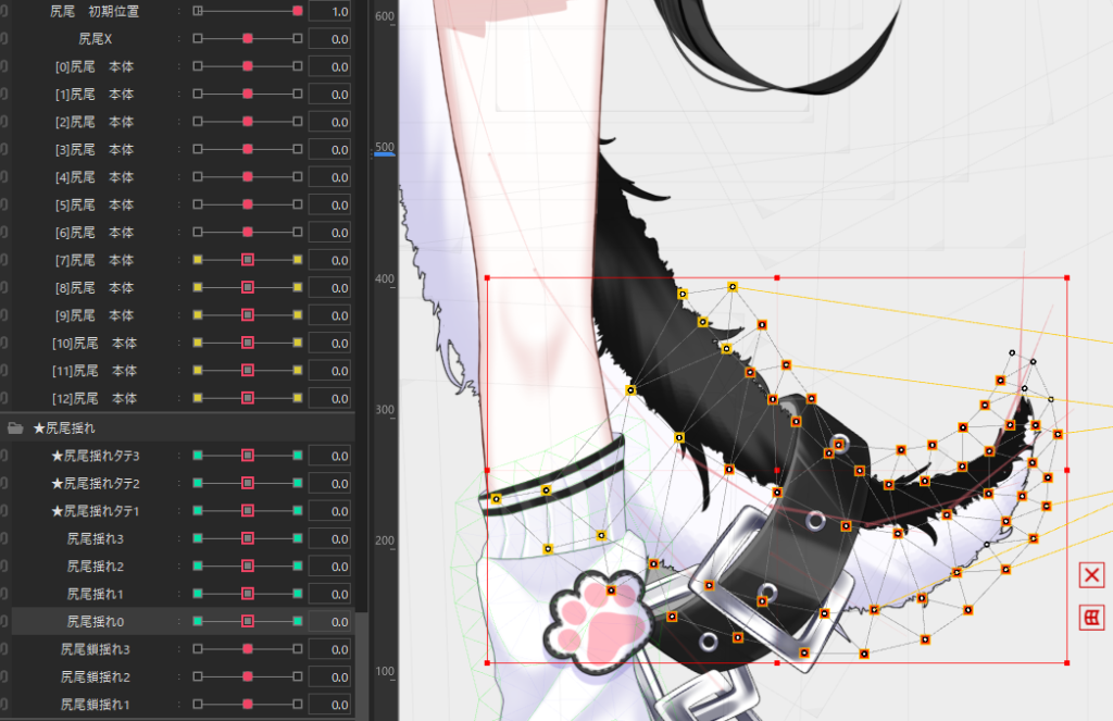 尻尾はスキニング機能使っています。クセの強い機能ですが、うまく使うと綺麗に揺れを作ることができます。